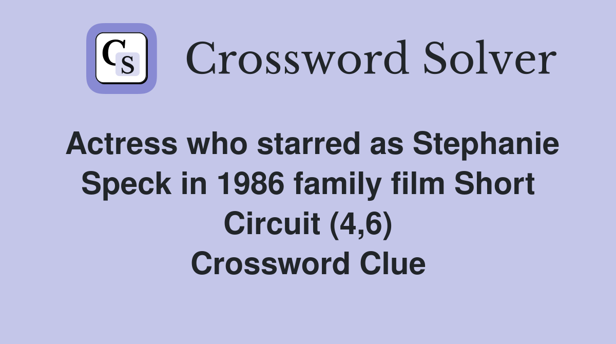 Actress who starred as Stephanie Speck in 1986 family film Short