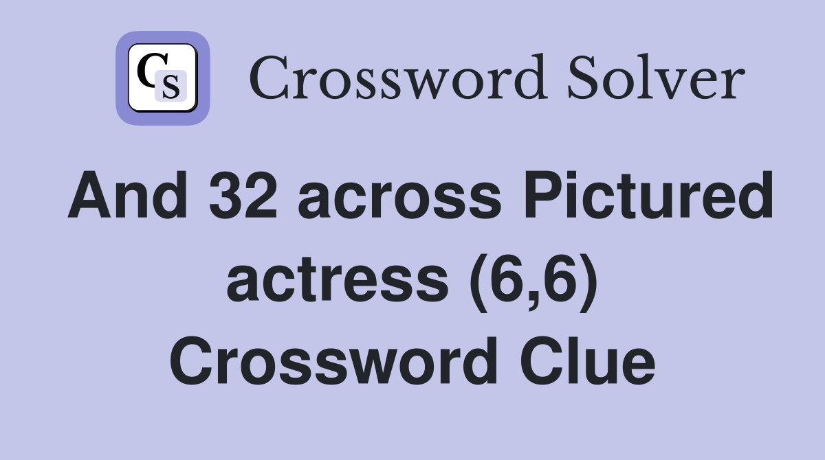 And 32 across Pictured actress (6 6) Crossword Clue Answers