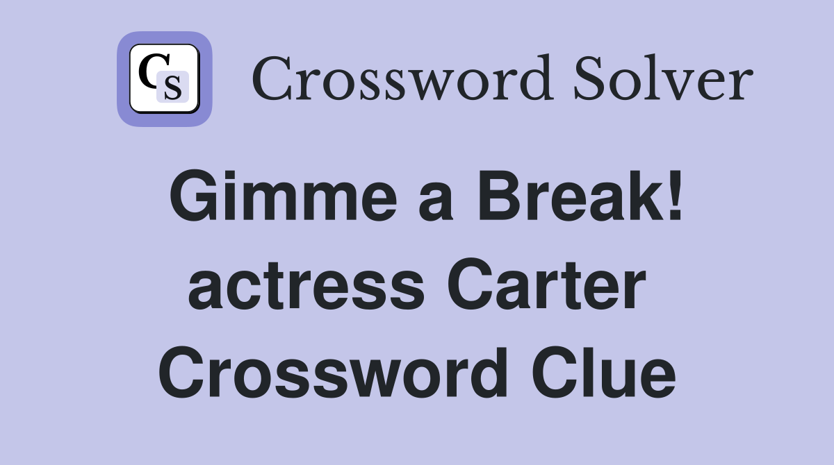 Gimme a Break actress Carter Crossword Clue Answers Crossword Solver