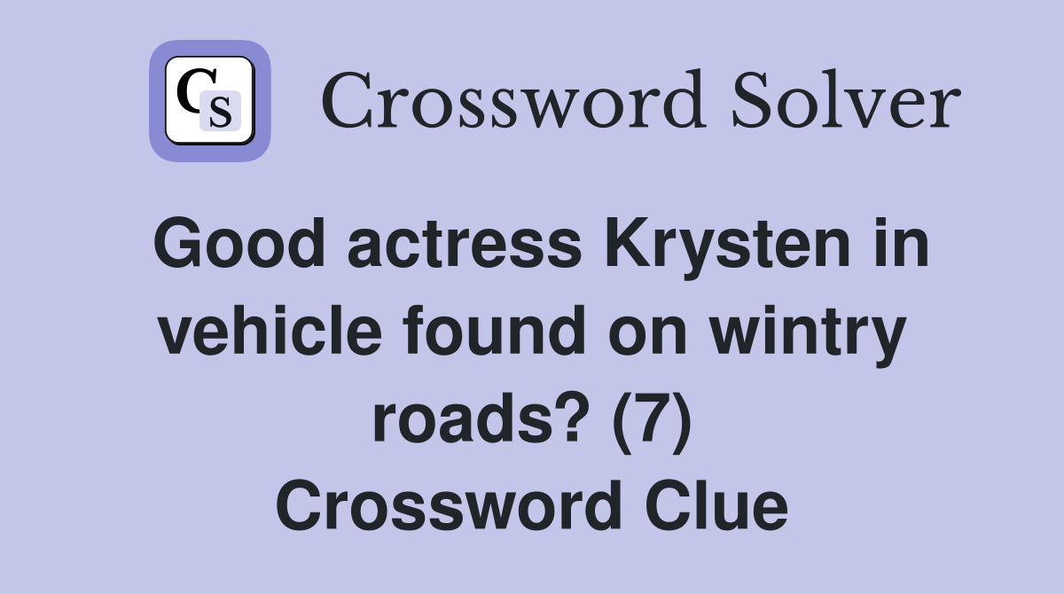 Good actress Krysten in vehicle found on wintry roads? (7) Crossword