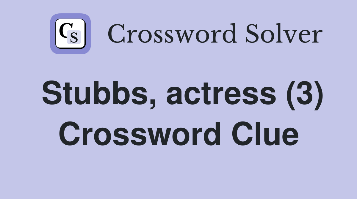 Stubbs actress (3) Crossword Clue Answers Crossword Solver