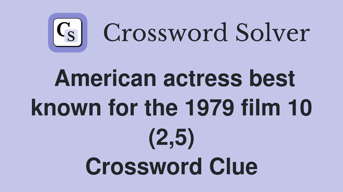 American actress best known for the 1979 film 10 (2 5) Crossword Clue