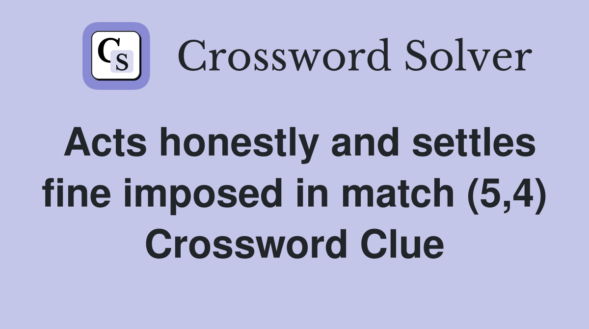 Acts honestly and settles fine imposed in match (5 4) Crossword Clue