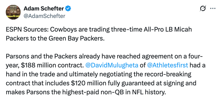 Adam Schefter #39 s typo inadvertently gave Micah Parsons a cool nickname