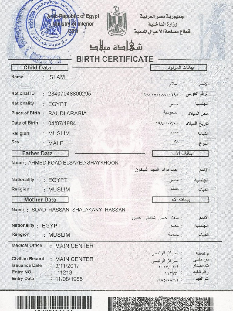 Birth Certificate ArnoldWorld