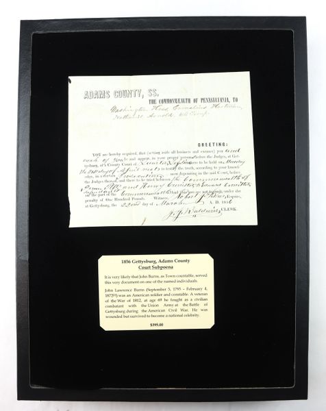 1856 Gettysburg Adams County Court Subpoena Civil War Artifacts