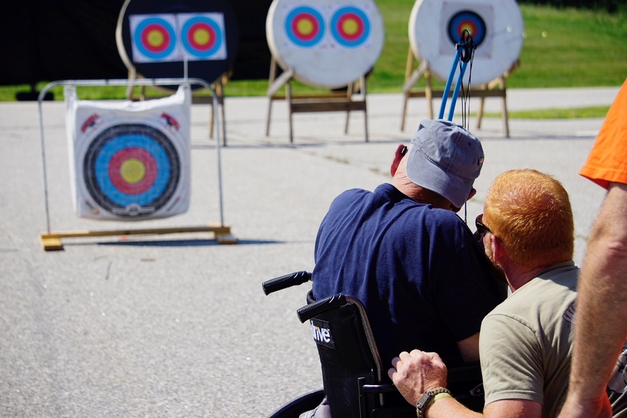 Karl Smith practices archery with Veterans Adaptive Sports Training