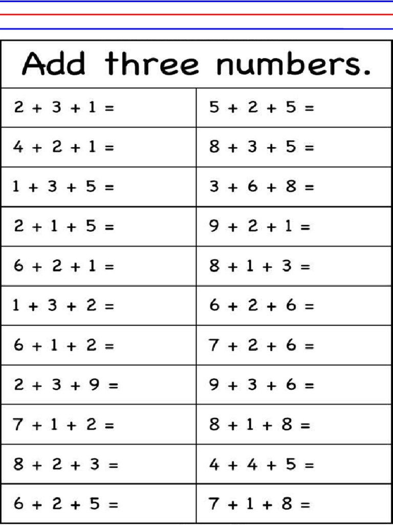 Adding Three Numbers Worksheets Free Image PDF Printables