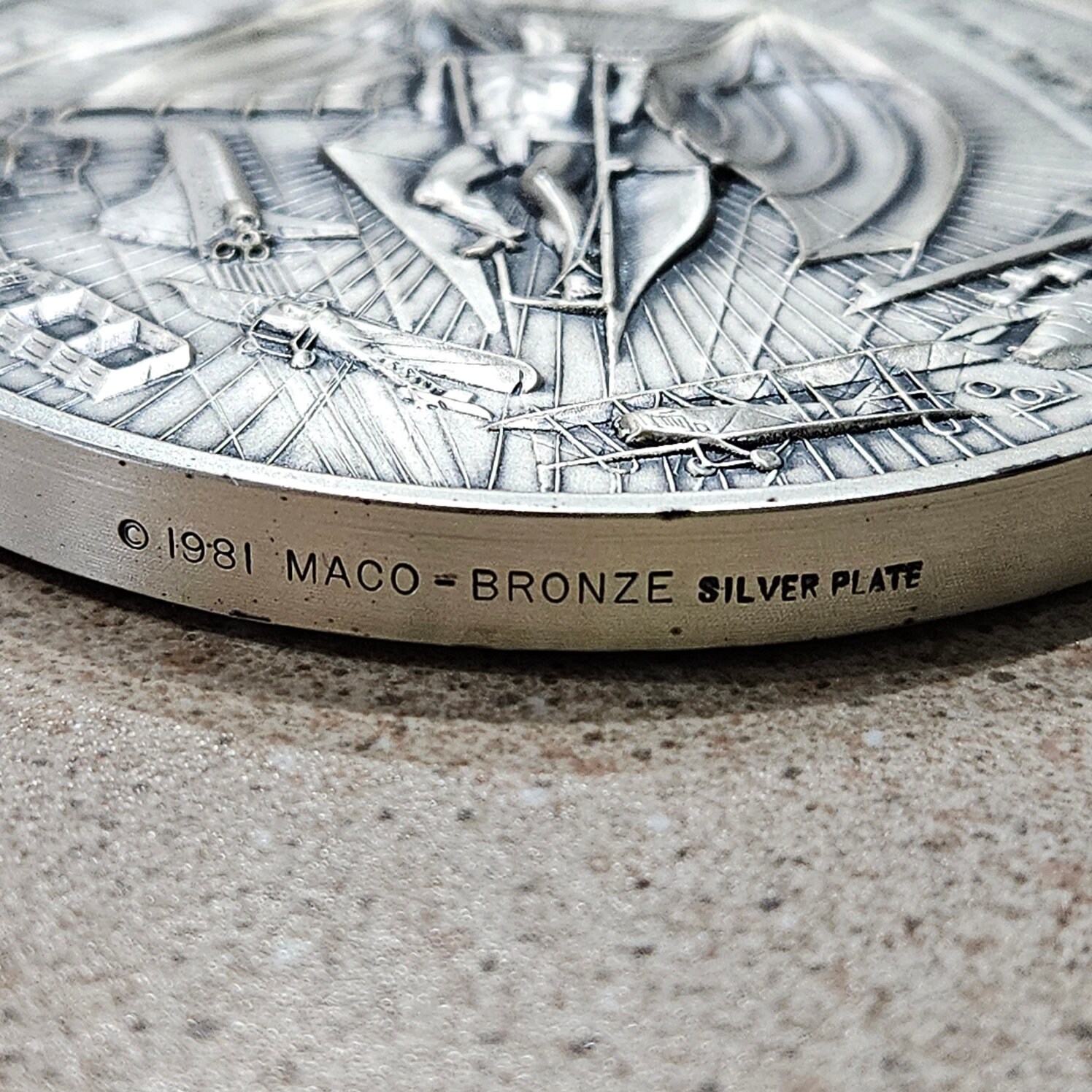 Vintage 1981 History of Flight Calendar High Relief Silver Plated 3