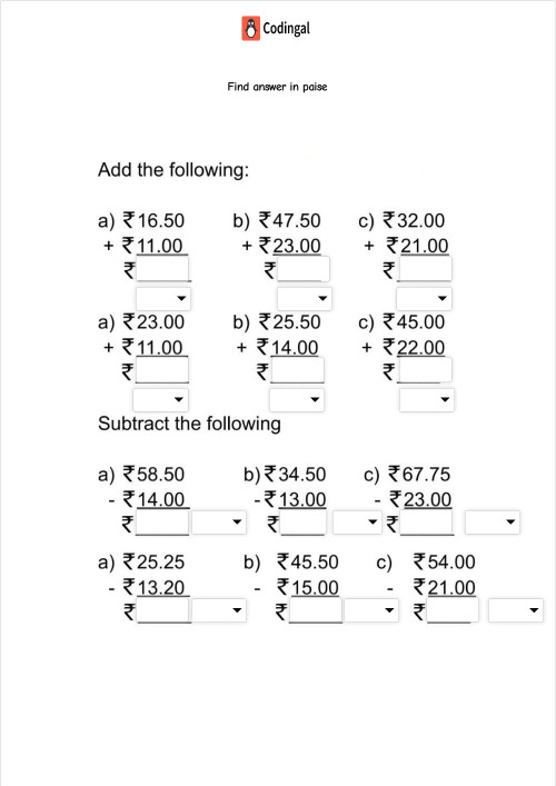Grade 3: Addition and Subtraction of Money worksheet Live Worksheets