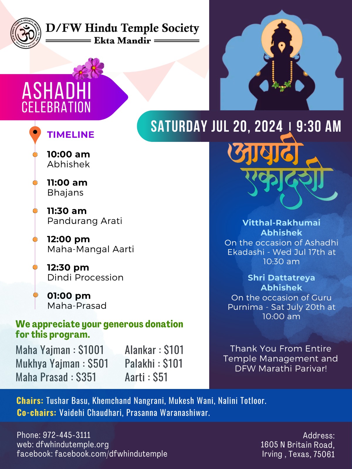 Dattatrey Abhishek Ashadhi Ekadashi Celebration DFW Hindu Temple Society
