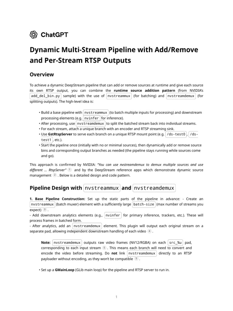 Dynamic Multi Stream Pipeline With Add Remove and Per Stream RTSP