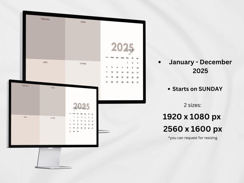 2025 Desktop Wallpaper Calendar Digital Desktop Organizer Neutral