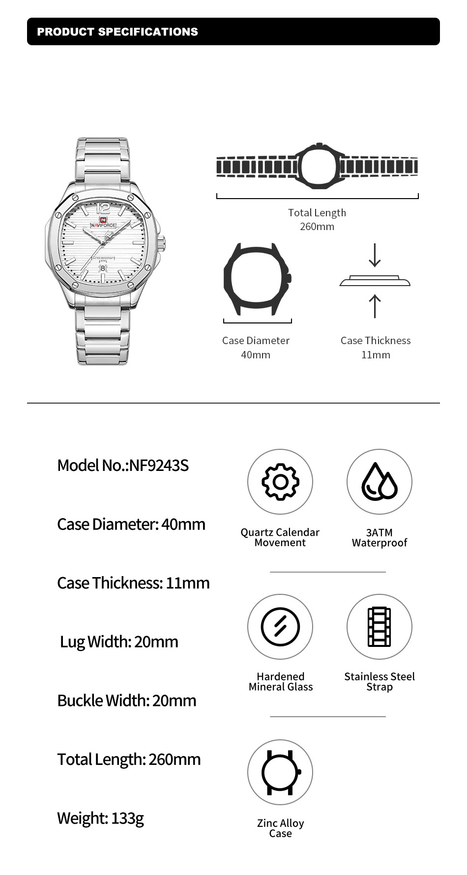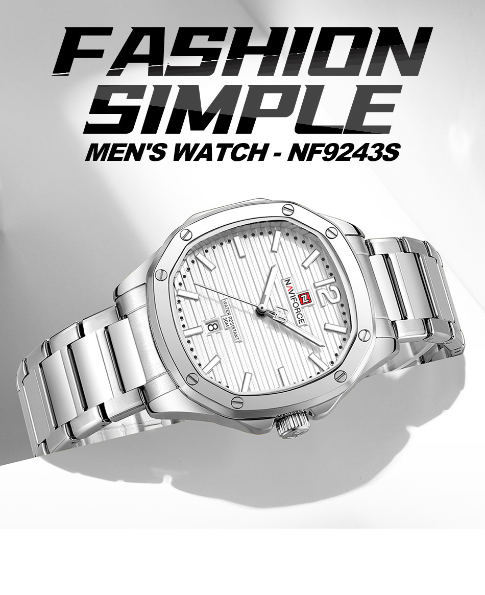 NAVIFORCE 9243S Men #39 s Stainless Steel Strap Watch with Calendar
