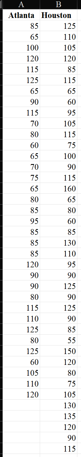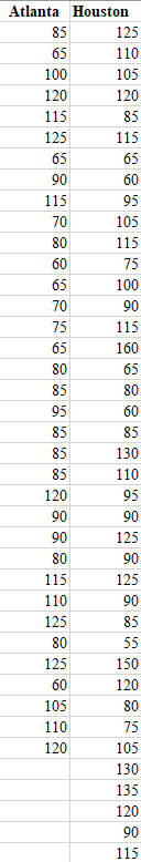Solved Atlanta Houston 85 125 65 110 100 105 120 120 115 85 Chegg com