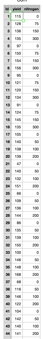Solved The relationship between corn yield (bushels per Chegg com