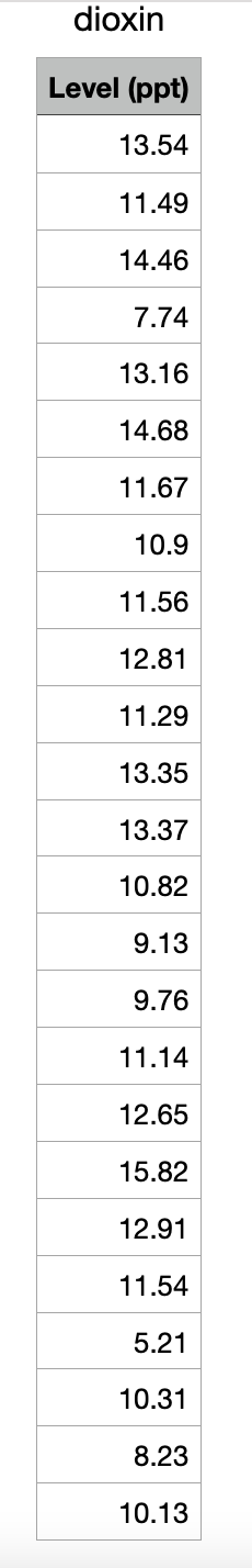 Solved 5 Use the file dioxin csv quot on the web site This is Chegg com