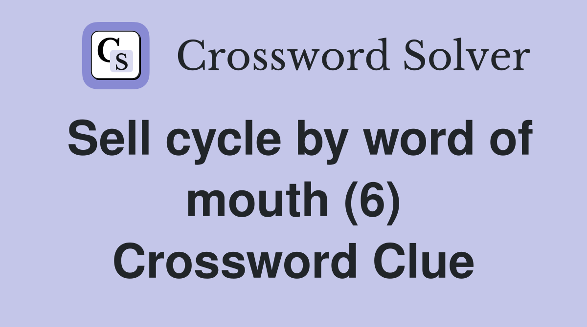 Sell cycle by word of mouth (6) Crossword Clue Answers Crossword Solver
