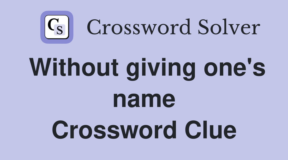 Without giving one s name Crossword Clue Answers Crossword Solver
