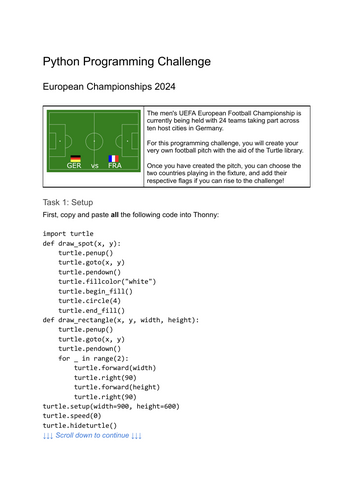 European Championships 2024 Worksheet to create a football pitch using