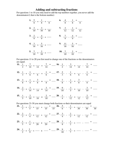 Adding Subtracting Fractions Worksheet With Answer Key Download