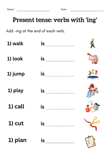 Activity on Verbs with ing Primary Resource English Worksheets