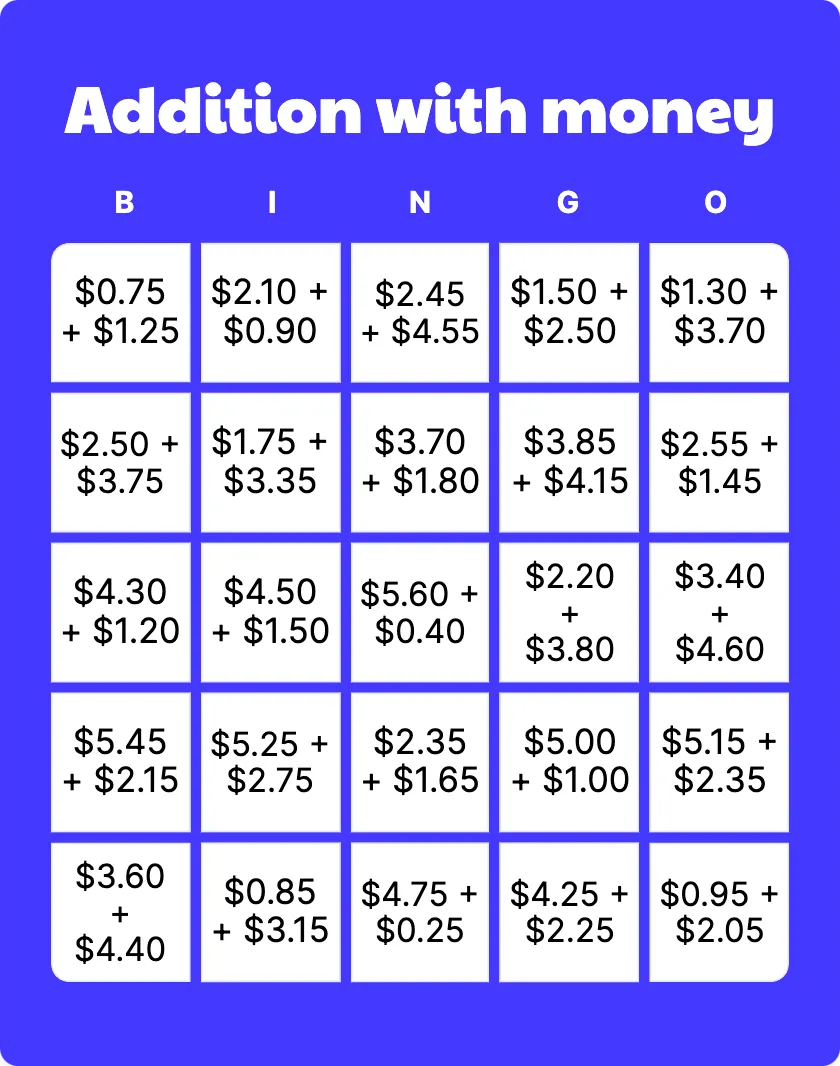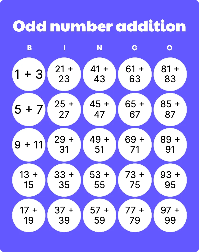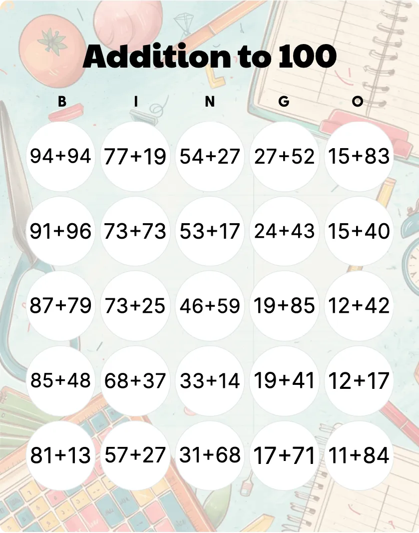 Addition Bingo: Printable Customizable Bingo Card Creator
