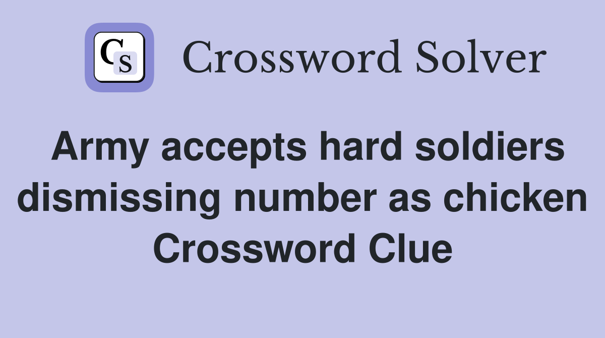 Army accepts hard soldiers dismissing number as chicken Crossword