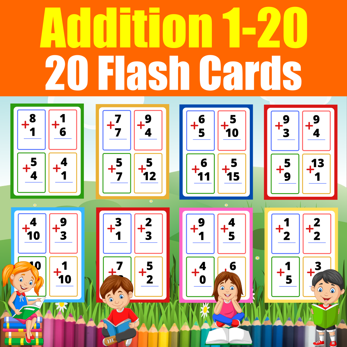 Free Addition Flashcards Printables 11 20 in 5 Colors Addition