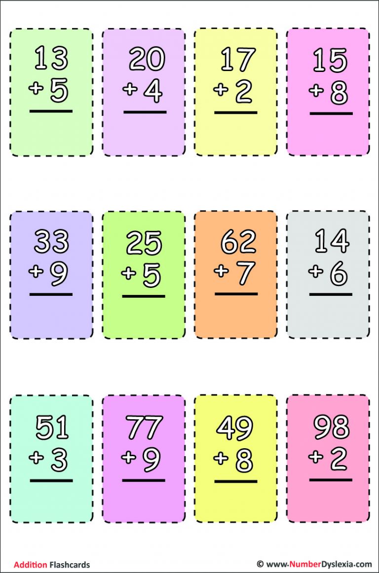 Printable Addition Flash Cards with Free PDF Number Dyslexia