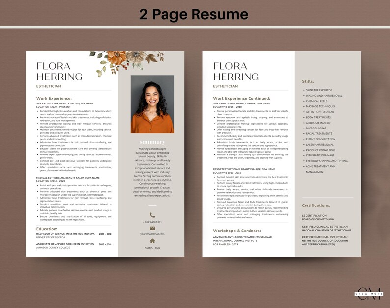 Esthetician Resume Template Canva Editable Aesthetician Cv Template