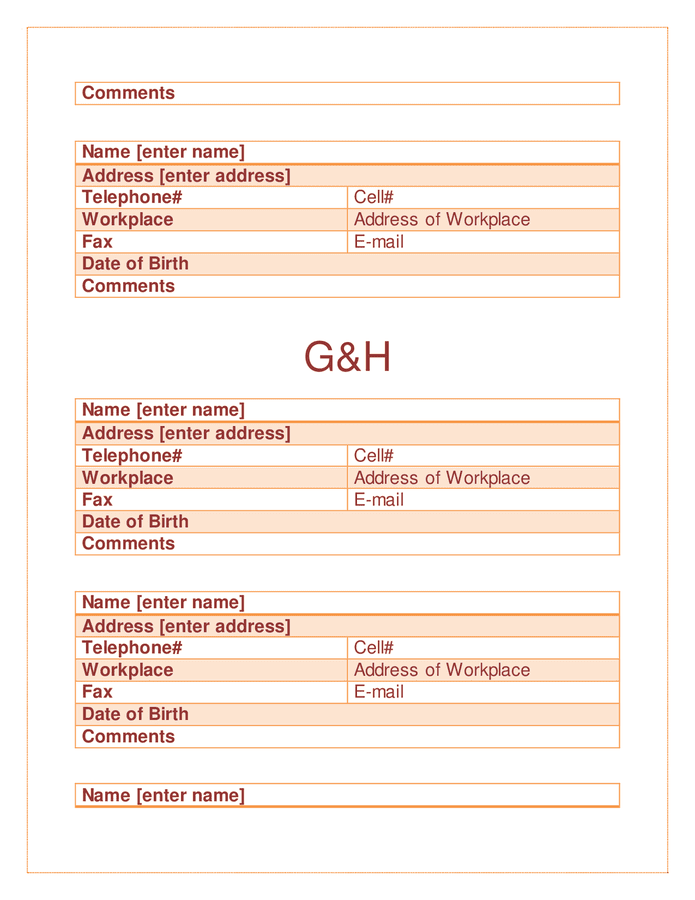 Address book template in Word and Pdf formats page 6 of 17