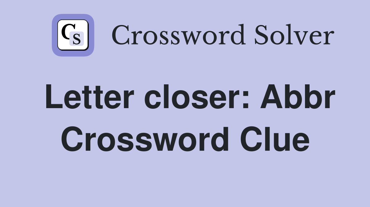 Letter closer: Abbr Crossword Clue Answers Crossword Solver