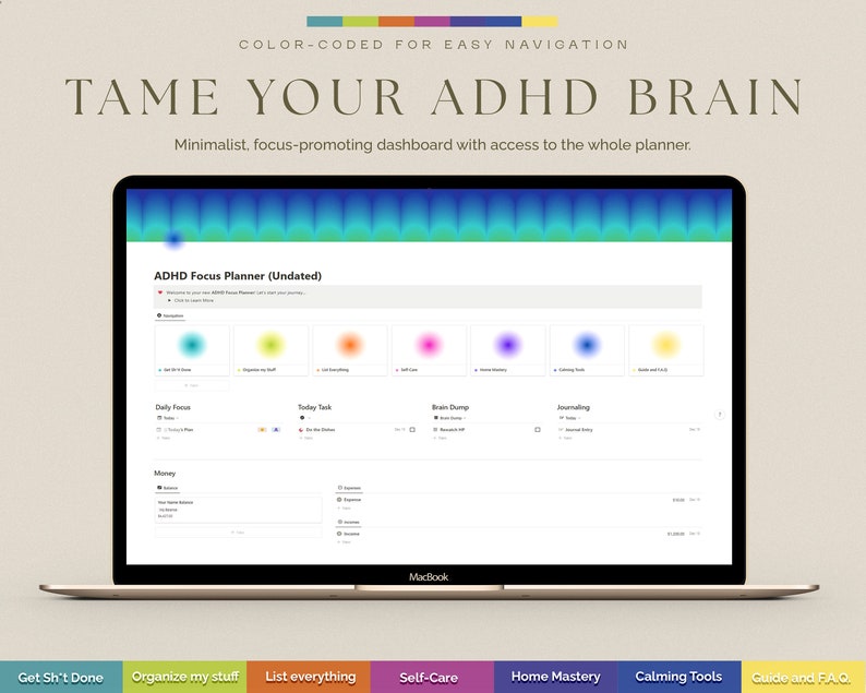 Adhd Digital Planner Notion Template Adhd Journal Adhd Daily Etsy