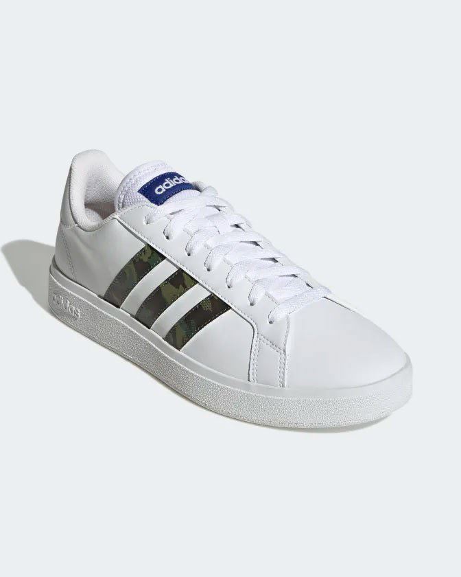 Sneakers bianche da uomo con strisce camouflage adidas Grand Court Base