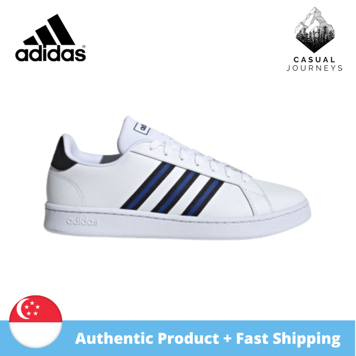 Adidas Grand Court Mens White (Black Blue Stripes) FV8131 Lazada