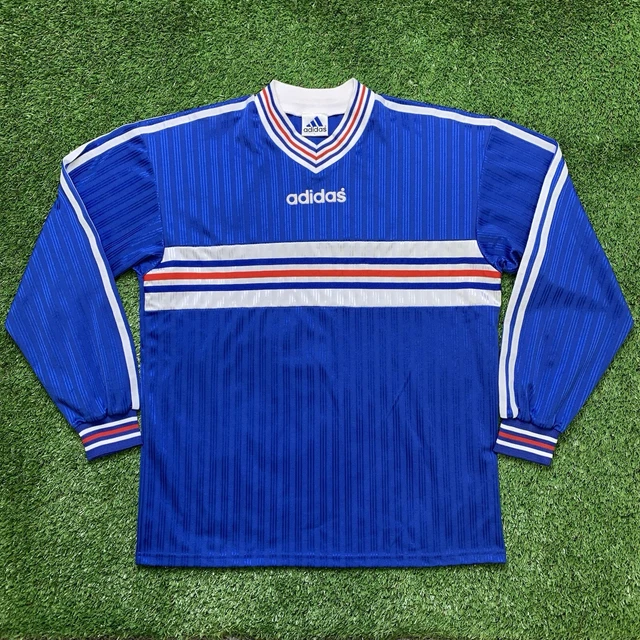VINTAGE 90S ADIDAS Template Jersey Shirt Kit France Blue Blank Long