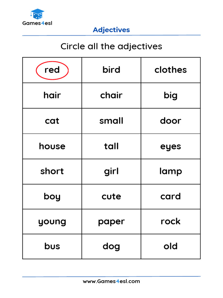 Adjective Worksheets For Grade 2 Games4esl