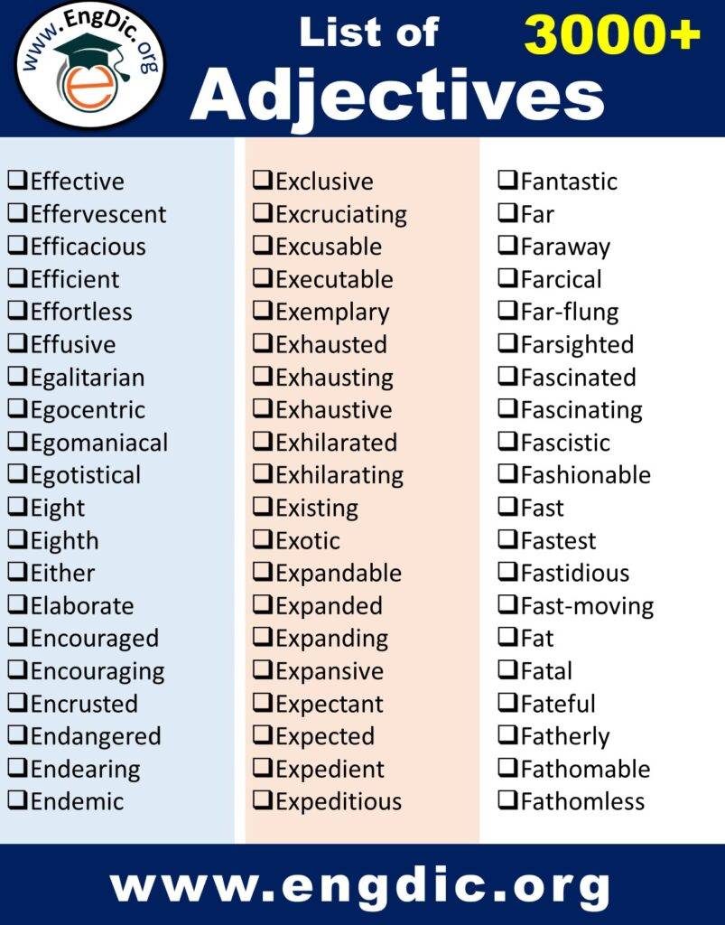 List of Adjectives (Daily Use Complete List with PDF) EngDic