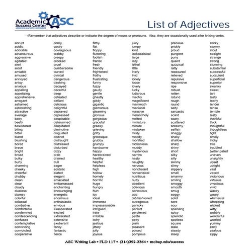 Adjectives Handout/Poster Adjectives Speech therapy resources