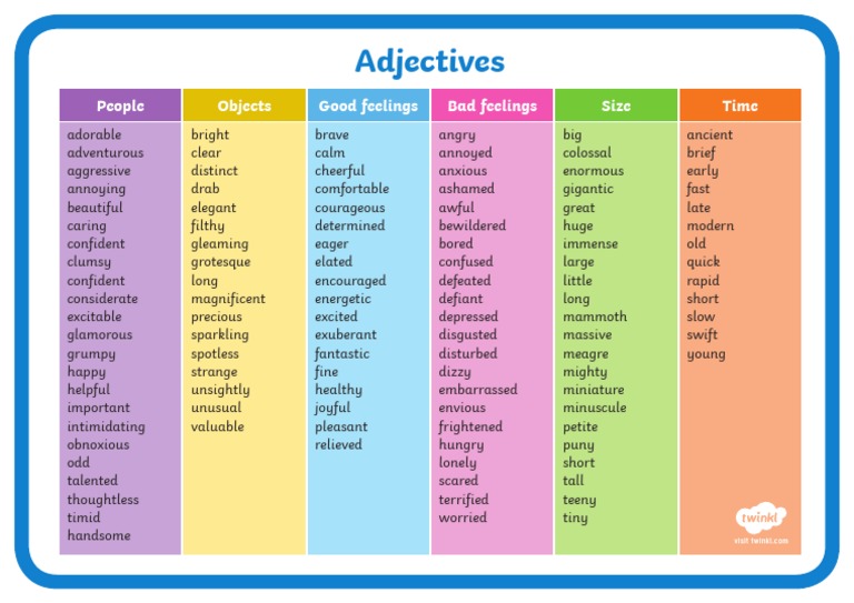 What Is an Adjective? Types List of Adjectives A Z
