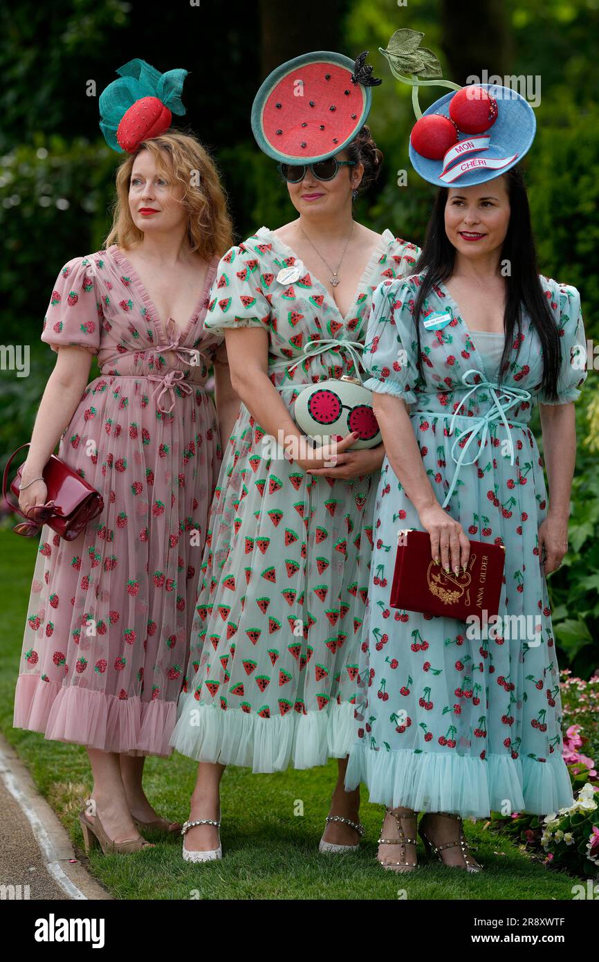 Racegoers pose for photographers during the Royal Ascot horse racing