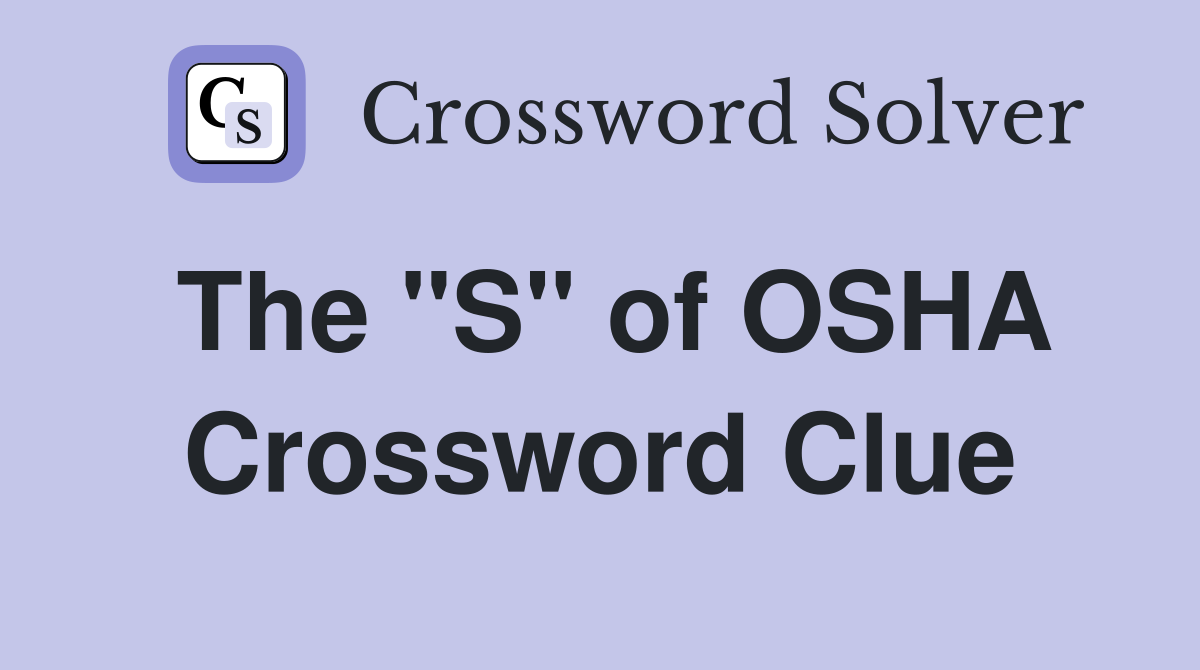 The quot S quot of OSHA Crossword Clue Answers Crossword Solver
