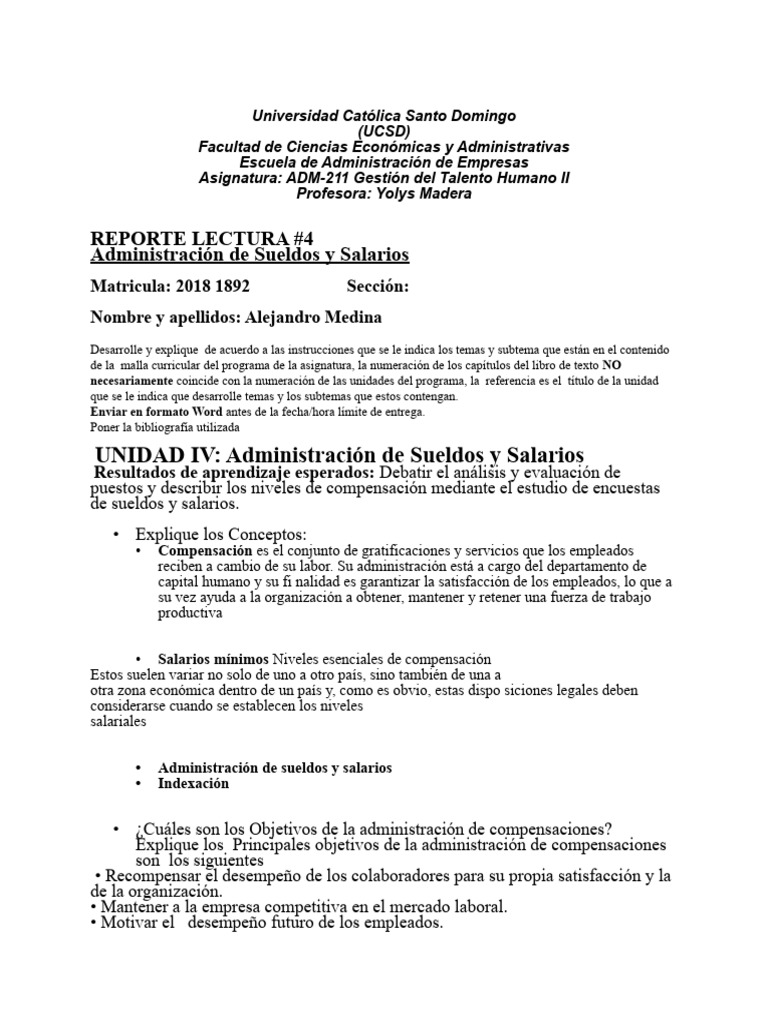 Reporte Lectura #4 ADM 211 Unidad IV Administracion de Sueldos y