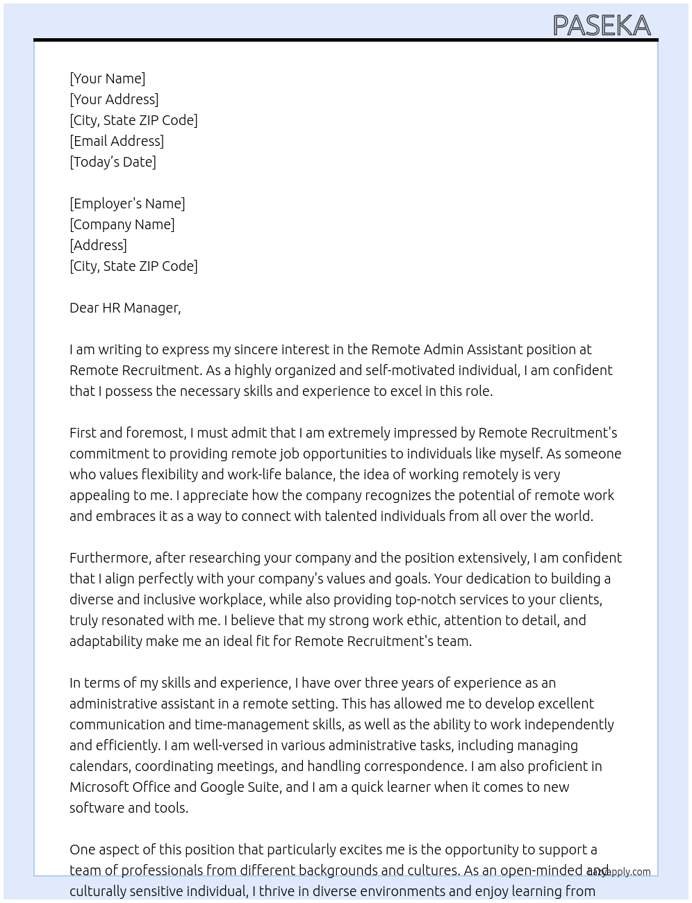 Cover letter for remote admin assistant LazyApply