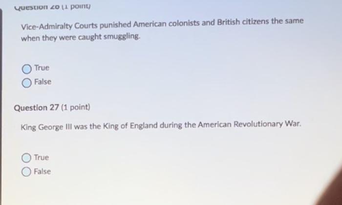 Question 20 (1 point) Vice Admiralty Courts punished Chegg com