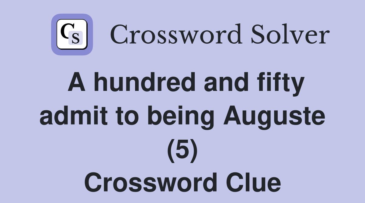 A hundred and fifty admit to being Auguste (5) Crossword Clue Answers