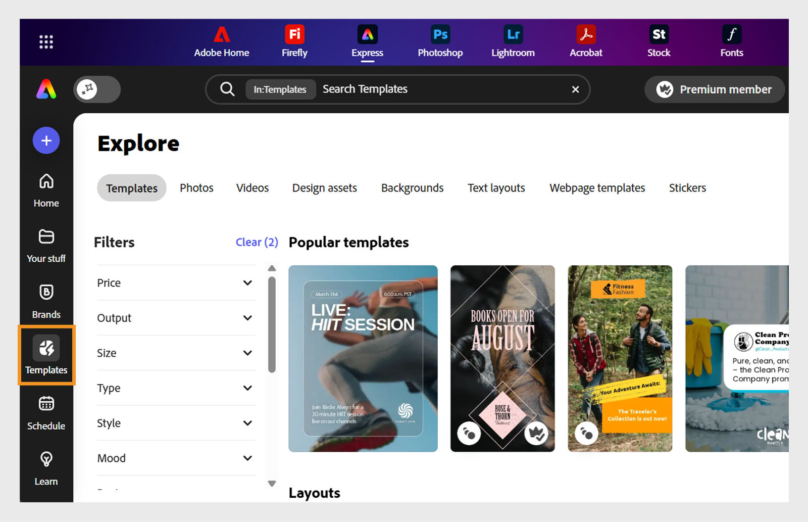 Templates in Adobe Express