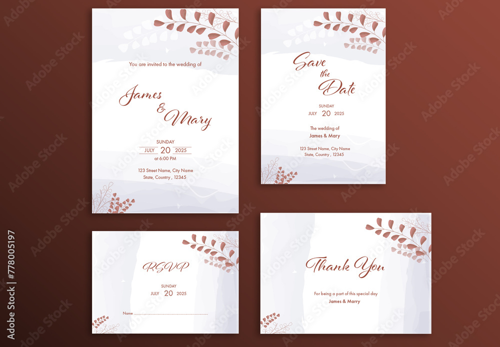 wedding invitation card template set Floral illustration for