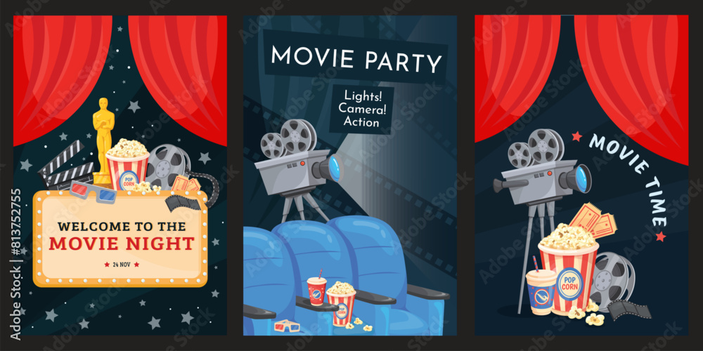 Premiere movie posters Film night time invitation flyer cinema